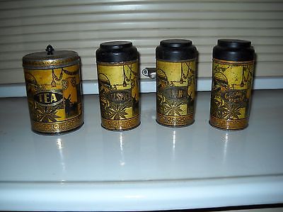 Hoosier "TEA" Canister w/Three (3) Spice Tins (Cinnamon/Allspice/Cream Tartar)