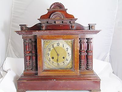ANTIQUE OLD MANTEL CLOCK WOODEN WOOD BIG SIZE