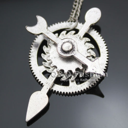 Title (ebay affiliate link): Antique Silver Steampunk 3D Watch Clock Hand Gear Cog Necklace Art Deco Kitsch