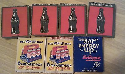 LOT OF 7 VINTAGE 1930-40'S COCA COLA & DR PEPPER SODA POP MATCHBOOKS-