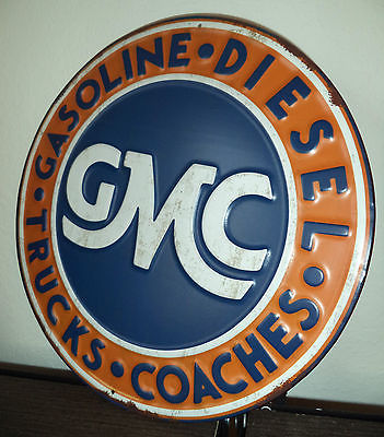 GMC GASOLINE DIESEL TRUCKS COACHES Embossed Metal Sign Man Cave Garage GM Chevy
