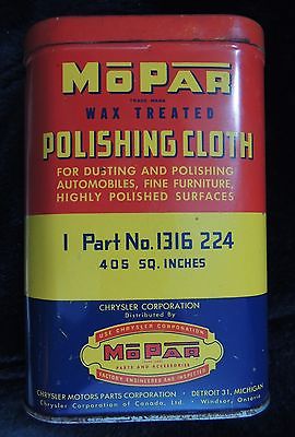 Title (ebay affiliate link): Vintage MoPar Polishing Cloth Tin Chrysler Motor Parts Corp Mopar Part 1316-224