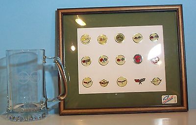 Corvette 35th Anniversary Glass Beer Stein and Framed Pin Set 15 Logo Pins