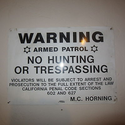 Title (ebay affiliate link): Warning Armed Patrol No Hunting or Trespassing Sign Metal