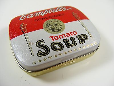 Title (ebay affiliate link): Campbell Soup Advertising Pill Tin with two Campbell's Lapel Pins Inside