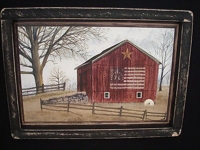 Title (ebay affiliate link): Primitive Country Print **'76 Flag on Old Barn** in black frame 12" x 9"