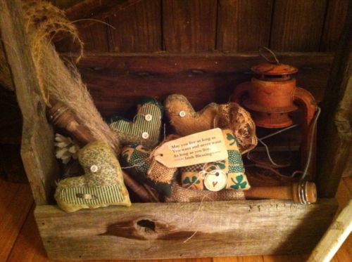 Title (ebay affiliate link): 5 Primitive St Patricks Day Hearts Irish Blessings Decor Cheesecloth Rusty Pins