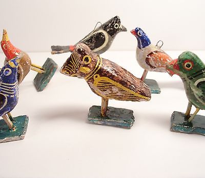6 Vintage Painted Wood Birds Folk Art Primitive 1.78 inches tall Each Unique