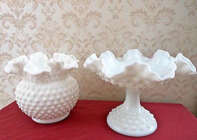 WHITE MILKGLASS VINTAGE FENTON LOT GLASS VASE CANDY DISH HOBNAIL WEDDING DECOR