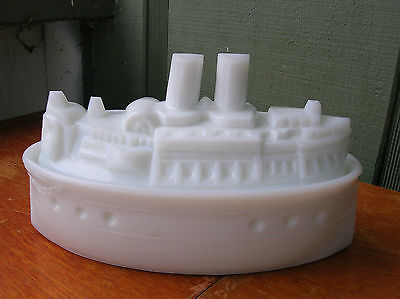 Antique Flaccus Milk Glass Steam Ship Mustard Pot Spanish Am War Era 1800s EAPG
