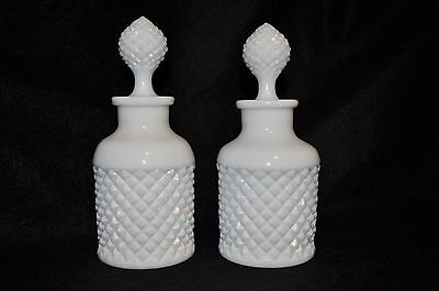 Pair of Milk Glass Toilet Bottle w/Stopper by Westmoreland English Hobnail