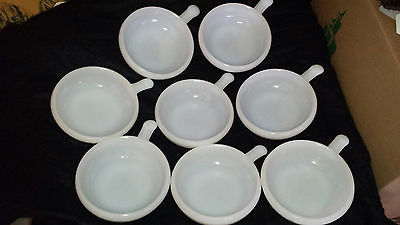 8 Glasbake Chili Soup Bowls 11 oz Lug Handle Milk Glass