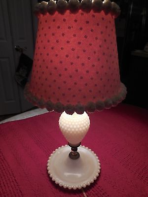 Vintage Table Lamp Hobnail White Milk Glass Bedside Saucer Base antique