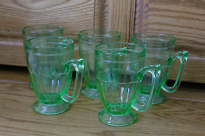 Title (ebay affiliate link): 5 JEANETTE GREEN DEPRESSION URANIUM GLASS MUG HEAVY ROOT BEER ICE CREAM FLOAT