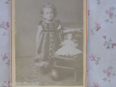 Darling Girl with Doll & Ball-Fashion Dress-Curly Hair-Antique CDV Photo-Germany