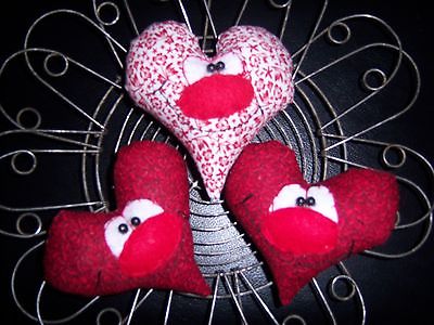 PRIMITIVE VALENTINE'S DAY HEARTS SET OF (3) DOLL ORNIE BOWL FILLERS