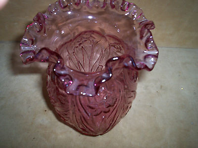 Fenton Vintage Translucent Glass Vase Cranberry Pink w/ Scalloped Ruffled Top
