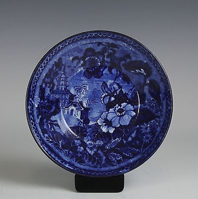 ANTIQUE STAFFORDSHIRE DARK BLUE PORCELAIN TRANSERWARE DISH 19C STEVENSON