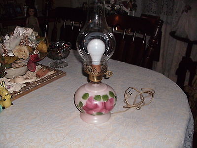Antique Victorian Lamp Handpained with Hurricane Shade Good Condition Works
