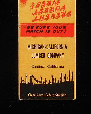 1950s Matchbook Michigan-California Lumber Company Prevent Forest Fire Camino CA