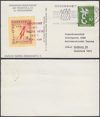 Germany 1959 Used stamp on rocket flight postcard to Hamburg...............R8580