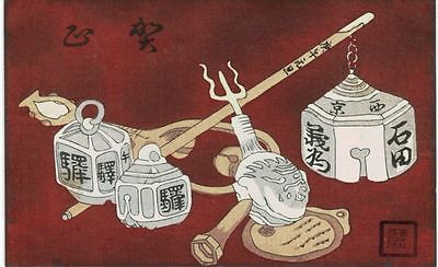 japan Art " New Year's card '' Woodblock print Vintage Postcard 013