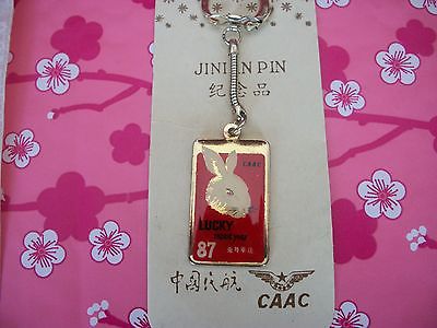 CAAC Airlines Key Chain Vintage Old Key Holder Metal Key Ring Rare LUCKY RABBIT