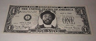 Title (ebay affiliate link): DICK GREGORY FOR PRESIDENT-1968 CAMPAIGN DOLLAR BILL-CIVIL RIGHTS MOVEMENT