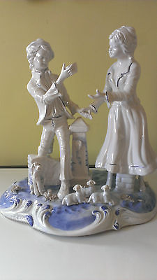 Title (ebay affiliate link): Large Capodimonte Group Girl Boy Flirting Young Love Dog Sheep White Blue Italy