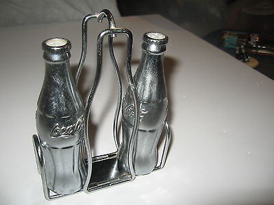 Title (ebay affiliate link): 1998 Coca Cola heavy chrome/silver looking salt & pepper shaker set with stand