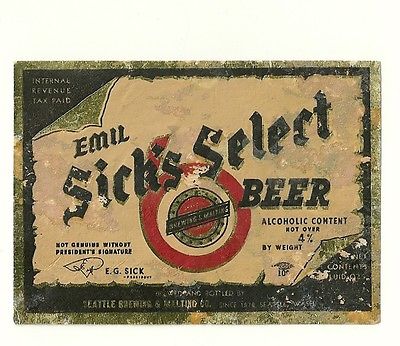 SEATTLE BREWING & MALTING CO, SEATTLE, WASHINGTON SICK'S SELECT IRTP BEER LABEL