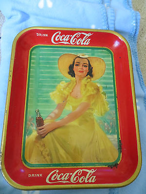 Title (ebay affiliate link): Vintage Coca Cola tray dated 1938 with lady in yellow