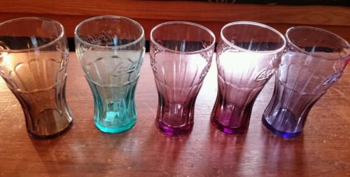 Title (ebay affiliate link): Lot of 5 COCA COLA GLASSES 16 ounce glasses rainbow glasses