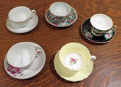 Vintage mixed lot 5 china tea cups with saucers