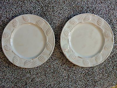 2 Ceramic Forest Motif Plates 8" Acorn and Needles Ornamental
