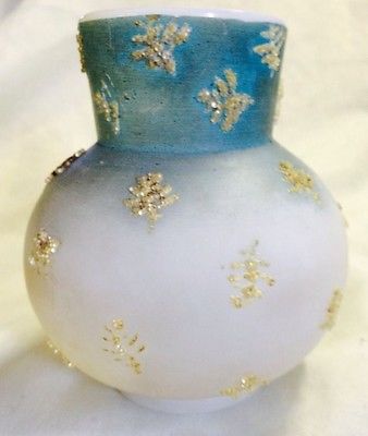 VINTAGE CORALENE CRYSTAL VASE BLUE, WHITE, YELLOW CORALENE