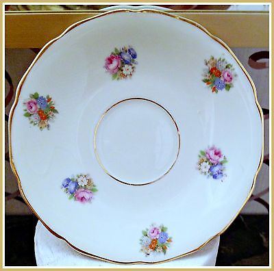 Antique Bohemia Royal Ivory Rose Pattern Fine Porcelain Saucer w/ Gold Trim