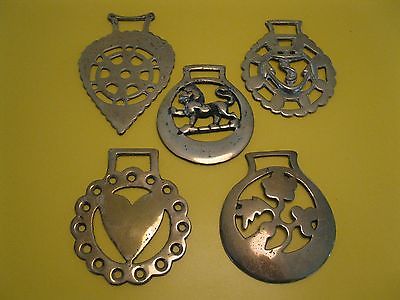 HORSE BRASS , 4 Pieces ,Heart ,Lion , Flower , Vintage
