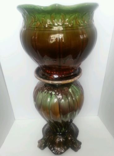 Title (ebay affiliate link): Large 17" Antique Majolica Pedestal, Roseville, Weller? AMAZING CONDITION