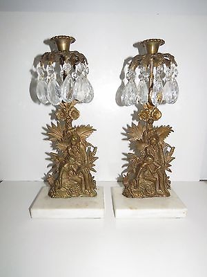 Title (ebay affiliate link): 19TH C PATINATED BRASS AND MARBLE FIGURAL FIREPLACE LUSTERS WITH PRISMS