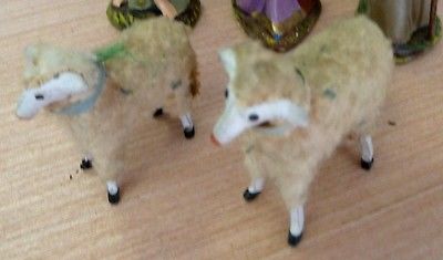 2 Small Antique Germany Putz Wooly Sheep Stick Leg Figurines