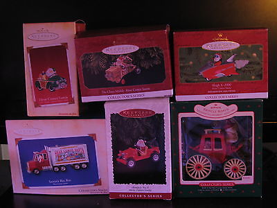 Title (ebay affiliate link): VINTAGE CHRISTMAS HALLMARK HERE COMES SANTA LOT 6 TREE ORNAMENTS USED WITH BOXES