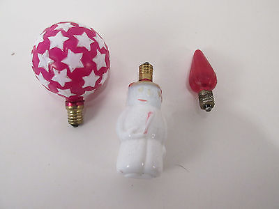 3 Vintage C-6 Christmas Light Bulbs 2 Milk Glass(Snowman & Ball W/Stars)1 XL PAT