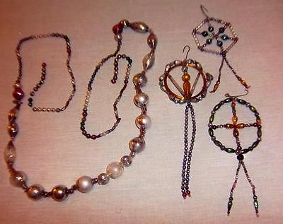 4 ANTIQUE VICTORIAN MERCURY GLASS CHRISTMAS ORNAMENTS & GARLAND-ESTATE FIND