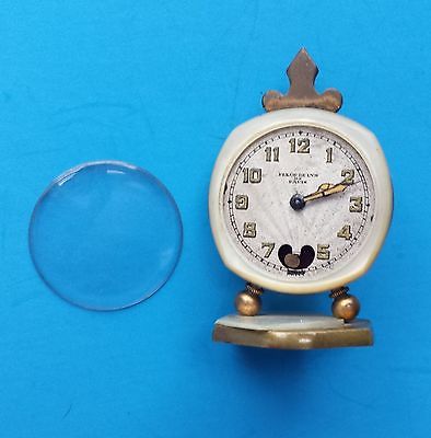 antique-FLEUR-DE-LIS/SWISS PARIS-DORE BRASS&MOP BOUDOIR WIND UP CLOCK-2.25" high