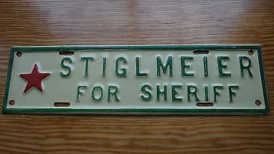 Vintage STIGLMEIER for SHERIFF STAR license plate sign old car topper police nos