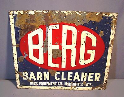 VINTAGE 1960'S METAL BERG BARN CLEANER SIGN MARSHFIELD WISCONSIN