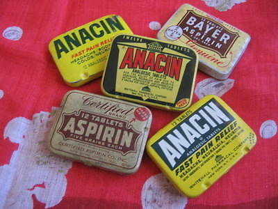 Title (ebay affiliate link): 5 MEDICINE TINS Vtg Aspirin Bayer Anacin Certified Tin Advertising CABINET Lot