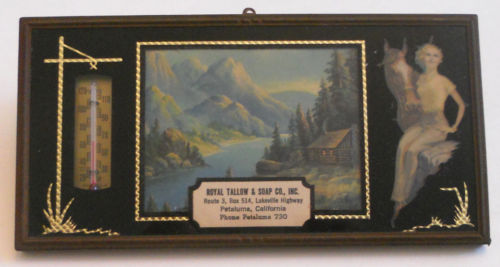Title (ebay affiliate link): 1951 Calendar / Thermometer / Picture Royal Tallow & Soap Co. Petaluma, Calif.