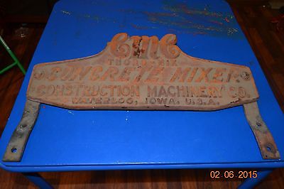 Title (ebay affiliate link): Antique Cast Iron Plaque Concrete Mixer Construction Machinery Co. Waterloo Iowa